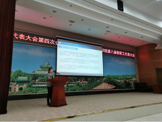 学院行政副院长贾玉敏作2019年学院财务工作报告。她介绍了2019年学院财务基本状况,对去年全院各类经费使用情况作了详细说明,并对学院财务工作提出了具体的建议。