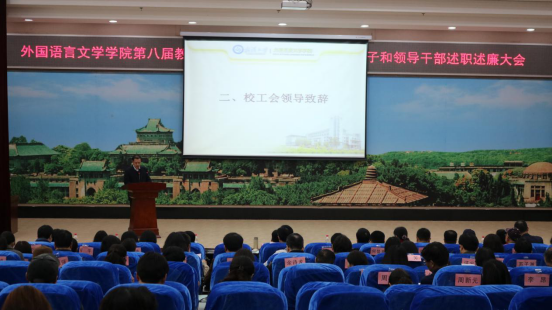3月28日下午,best365官方网站登录入口第八届教职工代表大会第三次会议暨学院中层领导班子和领导干部述职述廉大会在外语学院学术报告厅召开。best365官方网站登录入口工会主席蒋锁奋出席会议,学院领导班子成员及全体教职工代表参加会议。