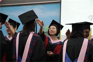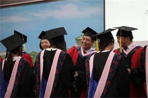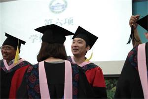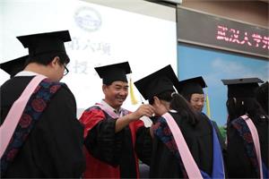 第六项,学位授予仪式,伴随着校歌声的响起,毕业生们由博士毕业生、研究生毕业生到本科生毕业生的顺序依次上台接受各位院领导及各系系主任对学位证书的授予。各位院领导及各系系主任把学生学位帽上的帽穗,从右边拨到左边,代表着稻穗成熟,象征毕业生已学有所成,可以展翅高飞。