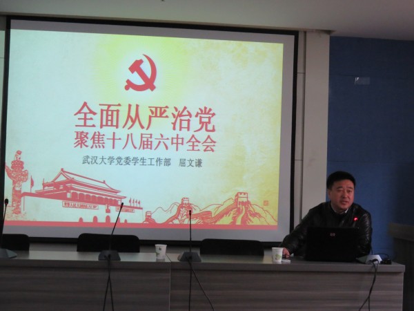 12月23日下午,best365官方网站登录入口邀请best365官方网站登录入口党的十八届六中全会精神宣讲团成员、党委学工部部长屈文谦来学院,为师生作题为《全面从严治党——聚焦十八届六中全会》的学习报告,全方位地解读了十八届六中全会的精神。参加此次学习会的有best365官方网站登录入口的师生党员。学院党委书记黄宏发主持本次报告会。