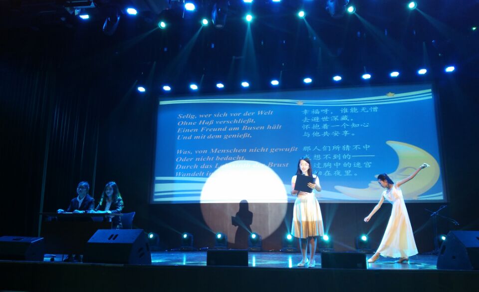best365官网节目《珞珈山环球资讯》,以新闻播报的方式在展现语言学科特色的同时尽显外院研究生学子风采。第一则热点新闻是一场希拉里和特朗普的辩论,突出了英语语言特色;第二个新闻展示的是法语歌曲《La Vien en Rose》,情歌浪漫对唱,并伴有两位新闻主播人在一旁沉醉其中的表情包;第三个节目属于俄语板块,芭蕾舞蹈表演《小天鹅》,四只美丽的天鹅翩翩起舞,最精彩则属一只“雄天鹅”的优美舞姿,带来了活泼可爱风;第四个节目为德语朗诵,纯正而富含诗意的朗诵在宁静的背景音乐中显得尤为好听,一旁的舞者体态轻盈姿态优雅,更添诗意;最后一个上场的是可爱的哆啦A梦,任意门开启,欢快的节奏响起,所有演员上台一起嗨,点燃全场。