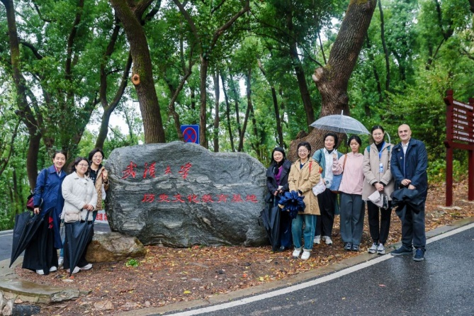 17日上午,参会老师在武大西语系师生的引导下进行了校园导览,大家深入感受best365官方网站登录入口的历史与文化氛围。嘉宾们从外国语学院出发,沿着枫园一路拾阶而上,登临珞珈山,参观了承载着红色记忆的“周恩来故居”。随后,途经行政楼和“九一二”操场,导览的终点是武大标志性建筑——樱花城堡。此次导览活动让与会嘉宾深刻感受到武大独特的学术与文化魅力,为会议日程增添了一抹温馨与人文色彩,同时也促进了彼此间更深层次的交流与互动。