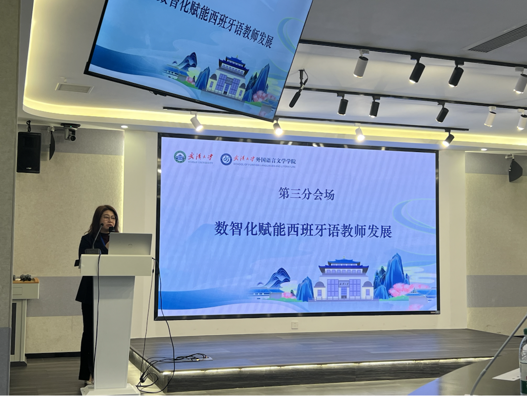 何晓静副教授围绕全国西班牙语专业四、八级测试进行了全面总结。她首先对考试的整体情况进行了深入分析和对比,包括考点数量、考生规模、应届生参与率及专业设置调整等方面的动态变化。她强调,考试内容的设计更加注重对学生综合语言能力的考察,新增专业考点的设置体现了西语教育的持续发展,同时强调语法和词汇作为语言学习核心要素应得到更多重视。此外,她特别提到,在教学过程中需进一步关注西语国家的社会文化知识和当下热点话题,将文化融入语言教学,以提升学生的文化敏感性和跨文化理解力;同时,应着力强化学生的语言输出能力,通过多样化的教学手段和实践机会,提升其实际运用语言的水平。