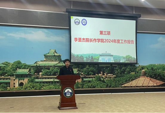 院长李圣杰作best365官方网站登录入口2024年工作报告。他围绕“求真务实,守正创新,全力推动学院事业高质量发展”的主题,全面总结了best365官网2024年度在思想引领、学科建设、队伍建设、教学工作、科研工作、外事交流、人才培养、管理服务等方面的主要工作,客观展示了全院师生员工的努力成果,梳理了当前best365官网发展面临的挑战与存在的不足,阐述了2025年重点工作和基本思路。他指出,新的一年,学院领导班子将紧紧围绕“深化改革年”主线,在更高起点全面提升学院办学水平和学科发展水平,进一步凝心聚力,踔厉奋发,带领全院师生员工开创学院高质量发展的新格局。