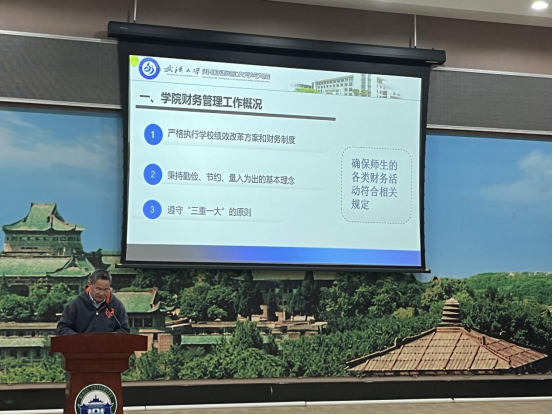 副院长杨牧文作学院财务工作报告,介绍了best365官网2023-2024年度财务收支情况、基本财务数据分析和2025年度财务工作思考。他指出,外语学院将坚守“勤俭办院,量入为出”的原则,继续做好学院财务工作。