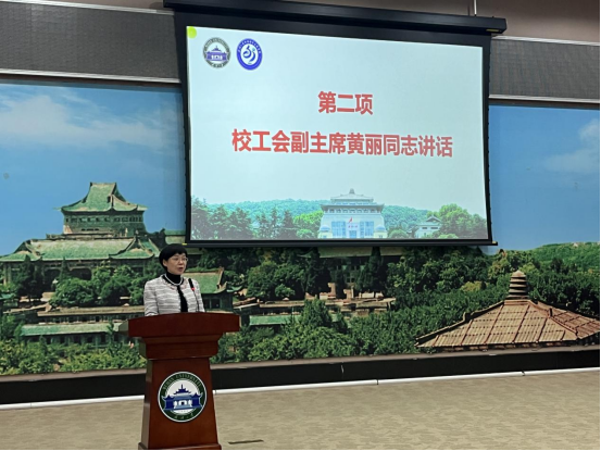 大会在雄壮的国歌声中开幕,学校工会副主席黄丽致辞,她对大会的召开表示衷心的祝贺。她肯定了学院所取得的成绩,同时也希望学院工会在院党委的领导下,以习近平新时代中国特色社会主义思想为指导,贯彻落实党的二十大精神和习近平新时代中国特色社会主义思想,履行好群团组织的职能,发挥组织凝聚力,进一步调动广大教职工服务学院发展的主动性、积极性和创造性,团结动员广大教职工为实现学院高质量发展做出新的更大贡献。