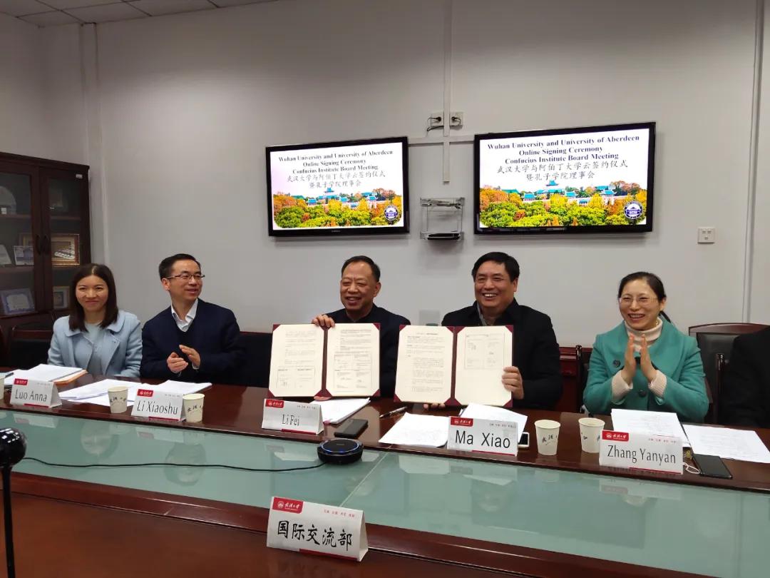 2020年12月16日下午,我校与英国阿伯丁大学举行云端会议,签署两校翻译学硕士联合培养项目协议及孔子学院合作续签协议,并召开阿伯丁大学孔子学院2020年度理事会会议。副校长李斐出席会议并致辞。best365官方网站登录入口、哲学学院和国际交流部的相关负责人参加会议。